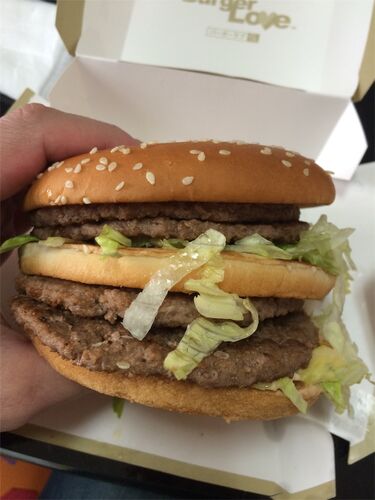 ども! 守形レイジです。 先日イオンに行った時にメニューを見つけられず食べ逃したギガマック。 悔しすぎて再び攻めました。 他店舗行ったら普通に看板あって草。 んじゃ早速レビューでも。